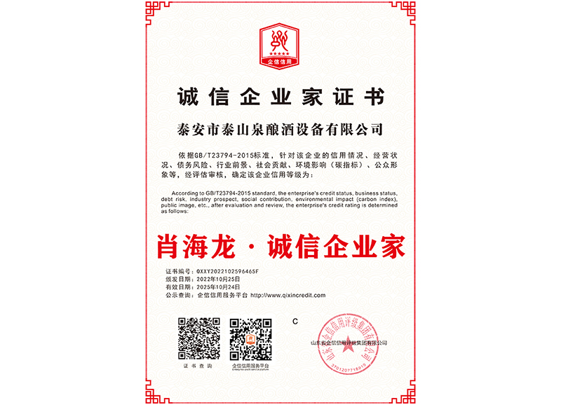 泰安市泰山泉釀酒設(shè)備有限公司,是一家專業(yè)從事釀酒設(shè)備機械化研發(fā)并集技術(shù)咨詢,工程設(shè)計,制造安裝,人員培訓(xùn)及售后服務(wù)為一體的綜合性企業(yè),本公司主要產(chǎn)品為:大曲清香、小曲清香、大曲醬香、大曲濃香等香型白酒機械化設(shè)備。  本公司與中國科學(xué)院自動化研究所簽訂技術(shù)服務(wù)合同,引進先進技術(shù),研究生產(chǎn)全自動化機械釀酒設(shè)備,由中國科學(xué)自動化研究所的技術(shù)支持,打造最先進的生產(chǎn)釀酒設(shè)備,公司有信心打造全國最先進白酒...